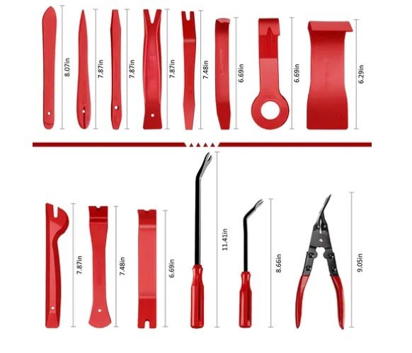 El juego de herramientas de eliminación de recortes para automóviles consiste en diferentes herramientas, excelentes para la extracción e instalación de embellecedores automotrices, marinos, de muebles o de aeronaves, incluidos paneles de puertas, molduras, bordes de ventanas, Clips, sujetadores, emblemas, paneles, Radios, etc.